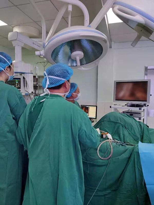 經(jīng)過近3個半小時的奮戰(zhàn),周旭陽主任率領(lǐng)的醫(yī)師團(tuán)隊與麻醉團(tuán)隊、手術(shù)室團(tuán)隊的精妙配合下,在腹腔鏡下將腸癌處病灶順利切除,標(biāo)本經(jīng)腹部小口子取出。同時,相應(yīng)區(qū)域的血管離斷,神經(jīng)保護(hù),淋巴清掃都如期進(jìn)行,手術(shù)結(jié)束后,邱奶奶腹部僅開了個小口子。