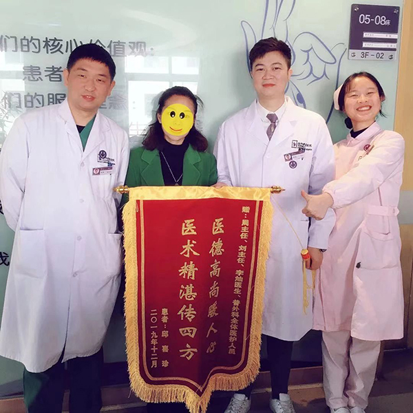 術(shù)后常規(guī)予以預(yù)防感染、營養(yǎng)支持等相關(guān)治療,奶奶恢復(fù)良好,二天下床活動并進(jìn)流質(zhì)飲食,八天拔引流管,十天拆線,按原計劃出院。如此小的創(chuàng)口和如此快的恢復(fù)速度,這一神奇的手術(shù)令奶奶一家人都驚喜不已,連連稱贊并送來錦旗表示感謝。