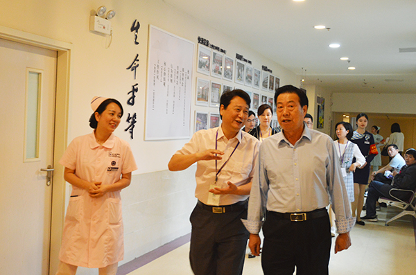 陳志剛會長一行先后參觀了我院婦產(chǎn)科住院區(qū),婦產(chǎn)科vip區(qū),心血管內(nèi)科,血透科等科室。隨后一行人來到我院多功能會員廳進行座談交流。曹學東總裁介紹了我院的發(fā)展歷史及概況。會后,雙方就慈善救助的發(fā)展等方面進行了深入的交流和探討。