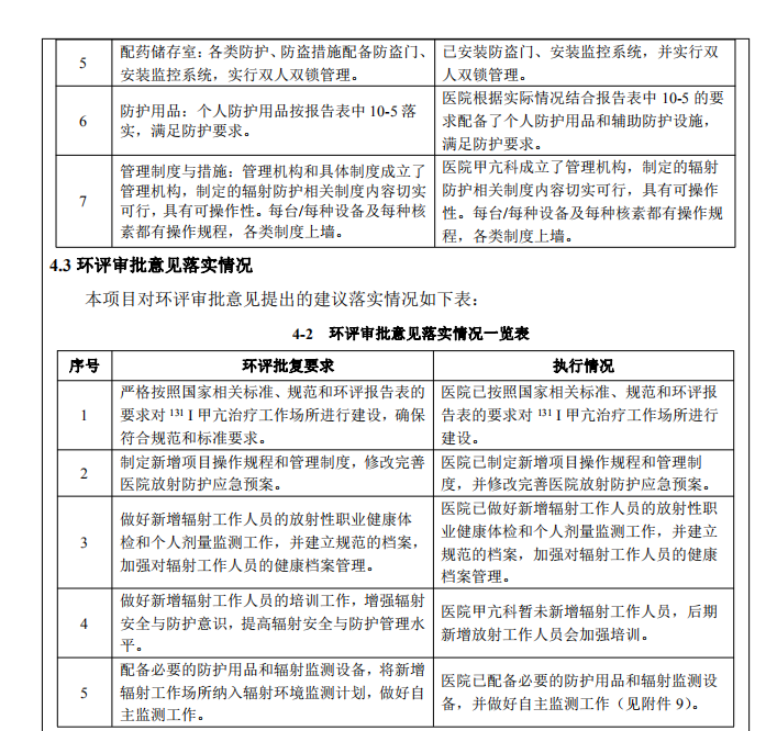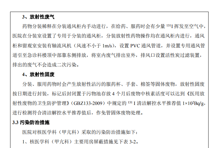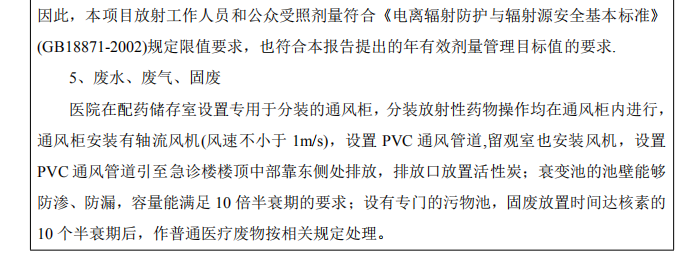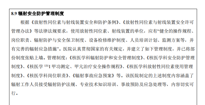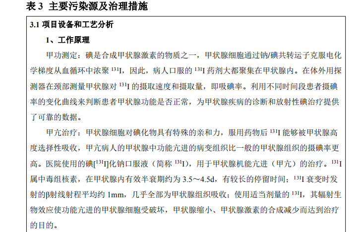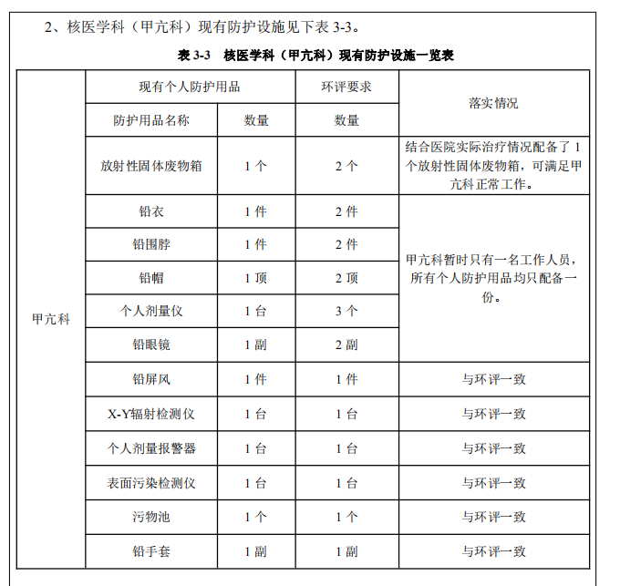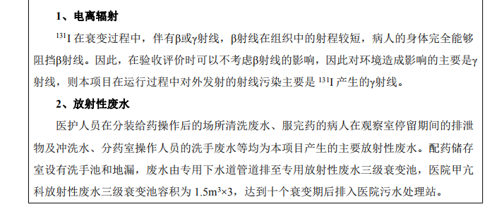 本次驗收為?個?級?密封放射性?作場所,利? 131I 開展甲亢治療,與環(huán)評報告和批復?致。