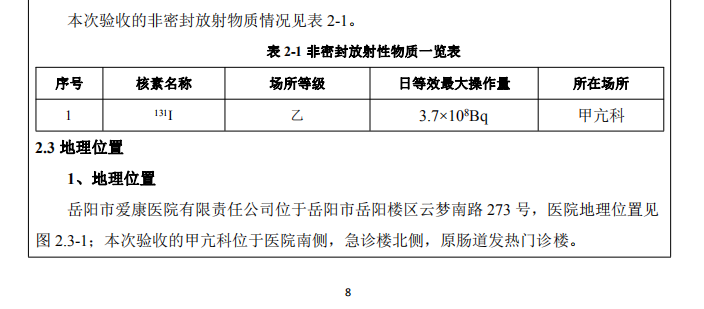 建設地點位于岳陽市岳陽樓區(qū)云夢南路 273 號岳陽市愛康醫(yī)院甲亢科,主要