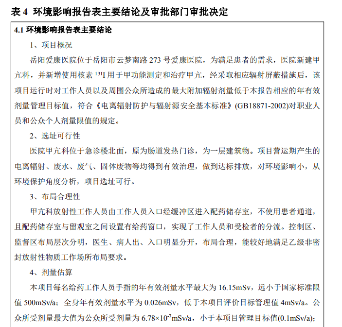 建設地點:岳陽市岳陽樓區(qū)云夢南路 273 號岳陽市愛康醫(yī)院有限責任公司院內(nèi)甲亢科