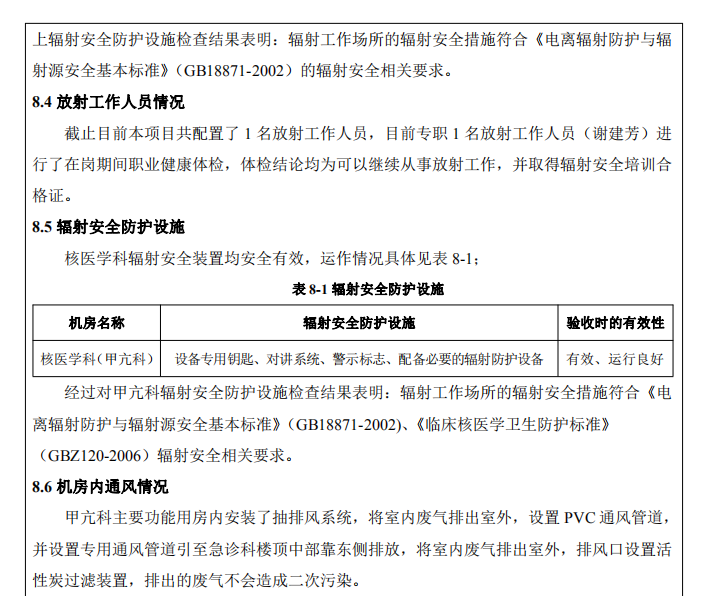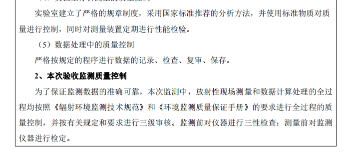 (3)積極配合?態(tài)環(huán)境部?的?常監(jiān)督檢查,采取“?檢”與“委托檢測”相結(jié)合,定期檢查安全防護設施,保證放射?作場所的各項輻射安全措施能正常運?,保證各安全邊界的輻射?平符合國家標準。