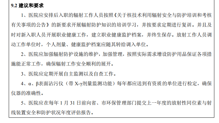 (2)輻射?作?員加強培訓與再教育,定期進?職業(yè)健康體檢,?作時佩戴個?劑量計并每季度進?監(jiān)測,建?職業(yè)健康監(jiān)護檔案與個?劑量檔案,并統(tǒng)?管理保存。